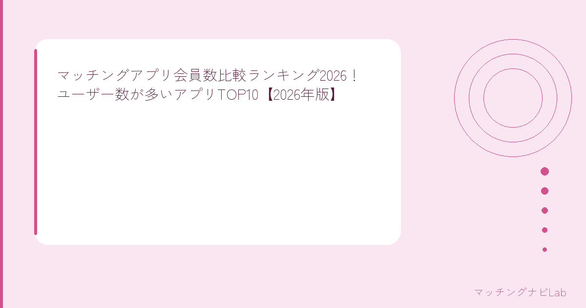 この記事では、2026年最新の会員数データを基に、主要マッチングアプリをランキング形式で比較するよ。