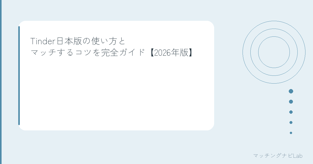 世界最大級のマッチングアプリTinder。日本でも使えるけど、海外発アプリだからこそ独特のコツがあるんだよね。結論から言うと、Tinderは無料でもかなり使えるアプリだけど、日本では写真とプロフィールの作り込みが成功のカギ。この記事で具体的な使い方とコツを解説するよ。